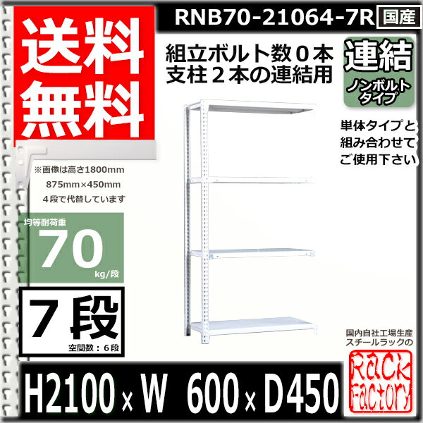 スチールラック 幅60×奥行45×高さ210cm 7段 耐荷重70/段 連結用(支柱2本) 幅60×D45×H210cm ボルト0本で組立やすい 中量棚 業務用 スチール棚 業務用 収納棚 整理棚 ラック